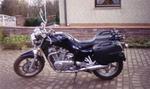 Nach und nach umgebaut wie folgt: Spiegler Stahlflex v + h, schwarze Minischeibe, Hepco + Becker Träger + Junior 40l Koffer, progressive Wirth-Gabelfedern + Öl, 2 in 1 BSM V2A Future, V2A Kühlerverkleidung, Ölthermometer